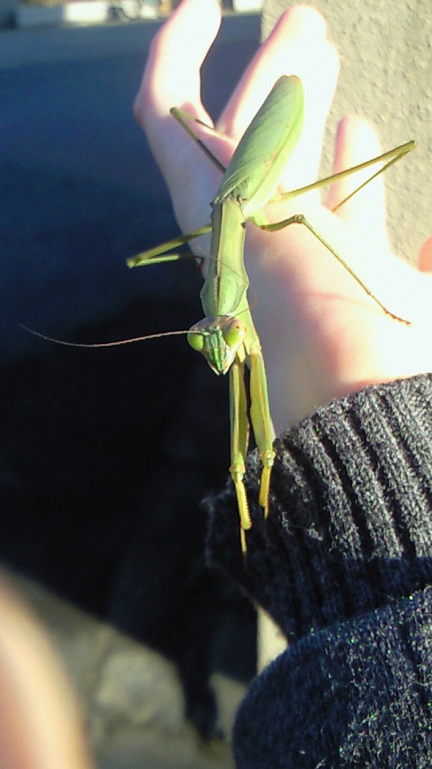 ▼真冬だというのに正真正銘のカマキリ。